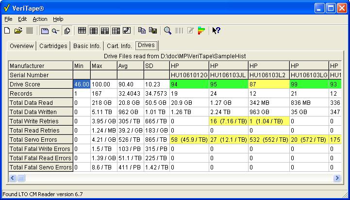 In addition to rating the cartridges, the drives are also rated on the same scale. Drives that require maintenance are easily detected.