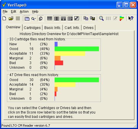 This screen shows the overview of all cartridges and all drives. Cartridges and drives that require attention can be identified at a glance.